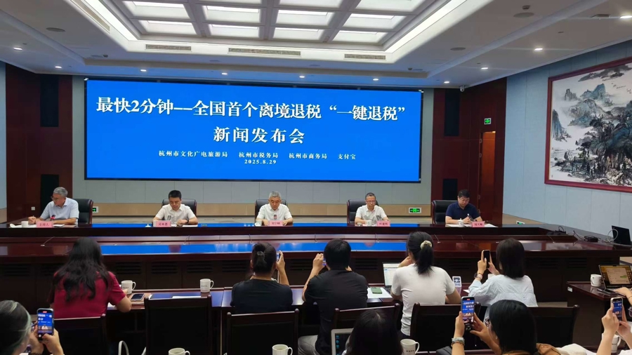 今天上午,杭州市文化广电旅游局、杭州市税务局、杭州市商务局联合支付宝、浙商银行在万事利丝绸六家门店推出全国首个离境退税“一键退税”快速退税服务,最快可实现2分钟退税到账。这是响应商务部等6部门关于优化离境退税政策、扩大入境消费的具体行动,通过进一步优化退税链路,极大地提升全球游客入境消费退税体验,助力杭州打造国际消费名城。