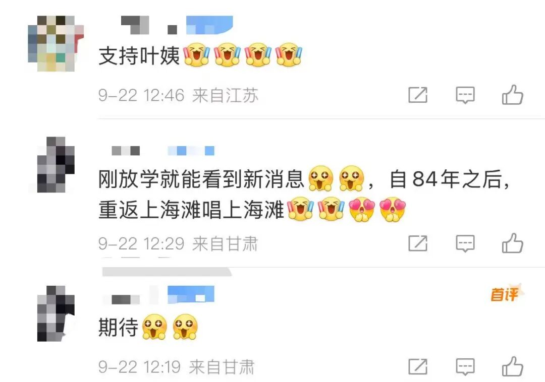 昨天(9月22日),叶丽仪个人微博发布预告“唱了一辈子上海滩,第一次上海演唱会”,宣布演唱会门票将于9月27日上午正式开售。